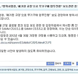이미 폐기된 미국규정 들고 수십조 미국무기구매 진행 - 빈총들고 전쟁? 썸네일형 리스트형 방위사업청 눈뜬 장님 맞았다 - 무기 안받고 돈주고, 한국혜택 파악조차 못해:감사원상세보고서원문 방위사업청 눈뜬 장님 맞았다 - 무기 안받고 돈주고, 한국지위향상 파악조차 못해: 감사원 fms무기구매 감사결과 감사원 또한 1974년부터 2010년까지의 FMS 구매누계액이 193억달러라고 보고서에 적시했습니다만 미 국방안보협력처는 지난해 10월 25일 1950년부터 2011년까지의 한국의 FMS 구매누계액이 198억달러라고 발표했으며 천4백페이지에 달하는 미국의 국가별 연도별 판매통계보고서를 발행했습니다 최신자료를 활용해서 감사를 하기 바랍니다. 국방안보협력처 홈페이지에 누구나 다운받을 수 있도록 게재돼 있기 때문에 감사원 또한 쉽게 접할 수 있습니다. 이 블로그에도 지난해 10월 29일 그 통계자료 원문 및 요약분이 이미 게재돼 있습니다. 이명박정부 초기 4년 미국무기계약액 32억달러 , 노무현정부.. 더보기 제정신 아닌 방위사업청-어제 발간 책자에 인용한 미국문서출처 또 오류 방위사업청이 미국이 폐기한 규정을 바탕으로 수십조 무기구매를 추진중인 것으로 드러난 가운데 어제 발간한 방위사업청 홍보책자에 기록한 미국문서의 출처 또한 잘못된 것으로 확인됐습니다. 2013/01/08 - [분류 전체보기] - 정신못차린 방위사업청; 폐기규정 사용드러나자 '타이핑오류' 또 거짓 해명 2013/01/07 - [분류 전체보기] - 정신나간 방위사업청, 이미 폐기된 미국규정 들고 수십조 미국무기구매 진행 - 빈총들고 전쟁? 방위사업청은 어제 2012년 업무성과와 방위사업의 정책동향을 알 수 있는 '2012년 방위사업청 성과는 이렇습니다'라는 책자를 발간했다고 대대적으로 홍보했습니다. 방위사업청 홈페이지에 이를 크게 선전한 것은 물론 대한민국정책포럼인 '공감코리아'에도 이를 알렸으며 연합뉴스를 .. 더보기 정신못차린 방위사업청; 폐기규정 사용드러나자 '타이핑오류' 또 거짓 해명 방위사업청이 이미 폐기된 미국의 무기판매규정으로 미국무기구매업무를 진행하고 있다는 사실이 드러나자 '단순한 타이핑 오류'라는 거짓해명으로 또 다시 국민을 우롱하고 있습니다. 2013/01/07 - [분류 전체보기] - 정신나간 방위사업청, 이미 폐기된 미국규정 들고 수십조 미국무기구매 진행 - 빈총들고 전쟁? 방위사업칭이 지난 12월 27일 발표한 언론보도해명은 자신들이 가지고 있는, 이미 폐기된 '2003년 미 안보지원관리규정'의 조항을 정확히 인용한 것으로써 결코 '단순한 타이핑 오류'가 폐기된 규정을 너무나 정확하게 타이핑 한 것입니다. 방위사업청은 어제 '방위사업청 이미 폐기된 미국규정 들고 수십조 미국무기 구매 진행' 이라는 제목으로 미국 무기 판매규정이 개정된 사실조차 모른채 이미 폐기된 규정.. 더보기 이전 1 다음