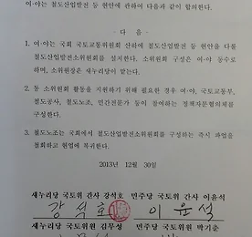 철도노조 파업철회 합의문 서명 원문 철도노조 파업철회 합의문 원문 합의사항 여야는 철도산업발전 등 현안에 관하여 다음과 같이 합의한다. 1. 여야는 국회 국토교통위원회 산하에 철도산업발전 등 현안을 다룰 철도산업발전소위원회를 설치한다. 소위원회 구성은 여야 동수로 하며, 소위원장은 새누리당이 맡는다. 2.동 소위원회 활동을 지원하기 위해 필요한 경우 여야, 국토교통부, 철도공사, 철도노조, 민간 전문가 등이 참여하는 정책자문협의체를 구성한다. 3. 철도노조는 국회에서 철도산업발전소위원회를 구성하는 즉시 파업을 철회하고 현업에 복귀한다. 2013년 12월 30일 새누리당 국토위 간사 강석호 민주당 국토위 간사 이윤석 새누리당 국토위원 김무성 민주당 국토위원 박기춘 전국철도노동조합위원장 김명환 더보기 '상원의 악동'테드 크루즈, 알고보니 이중 국적 - 캐다나 시민권자였다 Texas Senator Ted Cruz renouncing his Canadian citizenship Senator Ted Cruz has lawyers working to renounce his Canadian citizenshipCruz says he only discovered he had dual U.S.-Canadian citizenship after the Dallas Morning News reported it in AugustExperts say despite his Canadian birth, he is likely to be eligible to run for PresidentCruz met with Donald Trump, a leading voice in the 'birther'.. 더보기 미러고농축우라늄매매협정 1993 [서명원문] - '핵탄두를 해체해 전력으로' 미러고농축우라늄매매협정 1993 [서명원문] - '핵탄두를 해체해 전력으로' 2013/12/29 - [분류 전체보기] - 지난 20년간 미국전력 10%, 구소련 핵탄두로 충당 - 25킬로그램 핵탄두가격은 40만달러 미러고농축우라늄매매협정 1993 시크릿오브코리아 안치용 더보기 이전 1 ··· 256 257 258 259 260 261 262 ··· 2011 다음