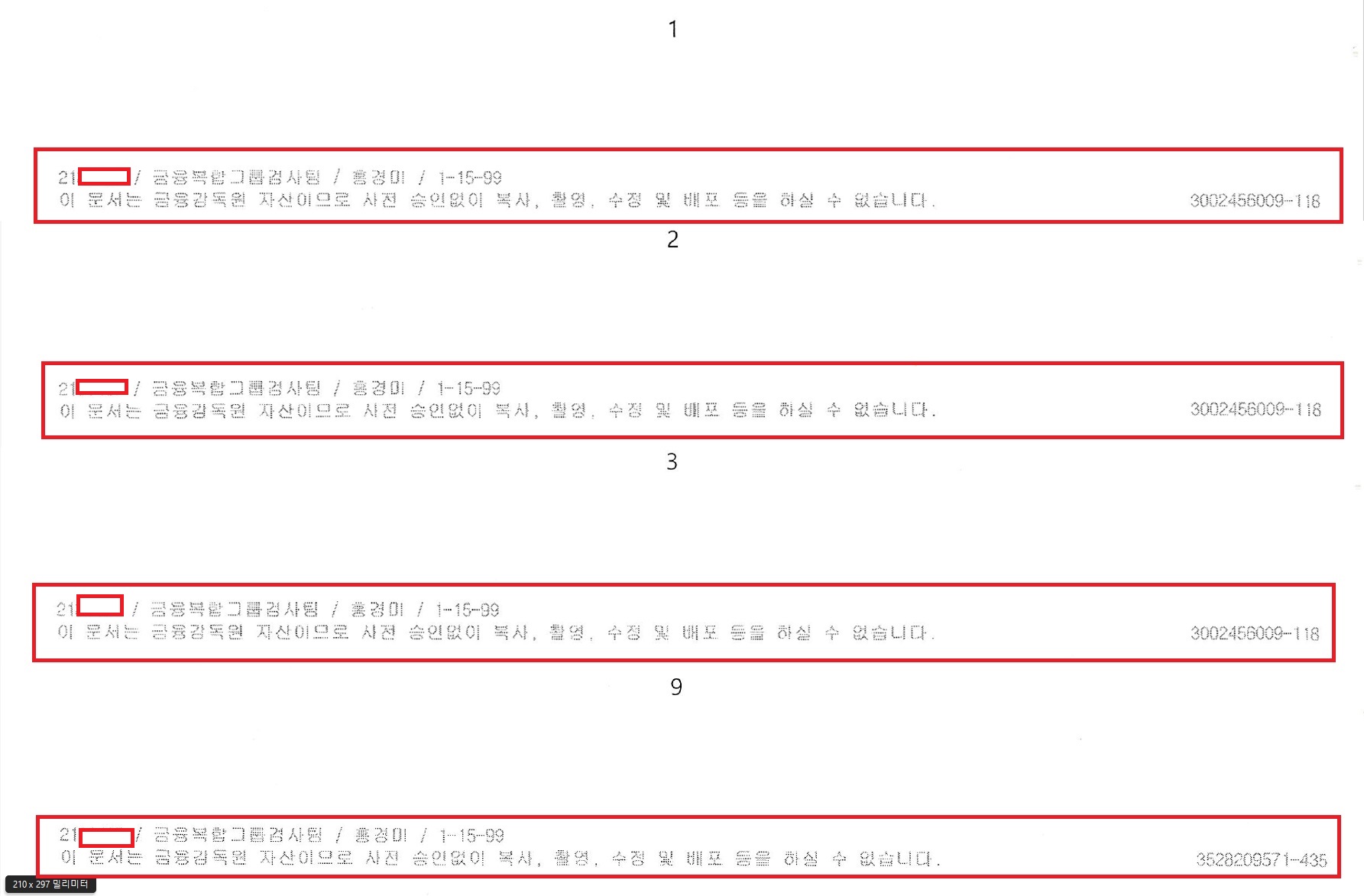 맨앞번호는 ‘인쇄자 홍경미’사번인듯