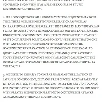 그러나 이 전문 보고뒤에도 박정희정권은 5년9개월이나 더 지속된 점을 고려하면 결과적으로 CIA의 예측은 어긋나고 말았으며 결국 박정희정권의 정권유지능력을 과소평가한 셈입니다