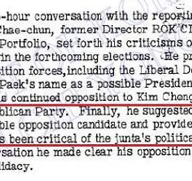 김재춘 주한미국부대사 면담록 썸네일형 리스트형 김재춘, 1963년 하비브찾아가 박정희 꺽도록 미국이 야당후보선택하고 자금 지원해달라 요청 : 미국무부 외교전문 첨부 김재춘 전 중앙정보부장이 1963년 민정이양에 따른 대통령선거직전 하비브 주한미국대사관 참사관을 만나 미국이 야당 대통령후보를 선택하고 선거자금을 지원해달라고 요구했던 것으로 드러났습니다. 2014/01/01 - [분류 전체보기] - 서청원사돈 삼화제분 박만송일가 미국 부동산 불법매입- 뉴욕코리아타운 현시세 천2백만달러 2012/11/04 - [분류 전체보기] - 김재춘,'공화당 사전조직에 간첩 황태성 관여- 공화당요원 다수는 좌익' - 미국무부 외교전문 2012/11/04 - [분류 전체보기] - 김재춘,'허정-김도연-백낙준이든, 그외 누구든 미국이 한국대통령 골라라' 미국에 요청 :이게 하비브김재춘 상세 면담록 필립 하비브 주한미국대사관 정무담당 참사관이 1963년 9월 3일 미국무부에 보고한 비밀전.. 더보기 [박정희X파일]'4대의혹' 재판도 사전조작- 박정희 승인하에 김형욱-길재호가 구형량 결정 :미대사관 면담보고서 박정희정권의 사법살인으로 불리는 인혁당사건이 재조명되고 있는 가운데 1963년 4대의혹사건 재판때 관련자들의 구형량을 검찰이 아닌 김형욱-길재호등이 결정했으며 박정희는 이를 알고도 승인했다는 미국무부 비밀문서가 발견됐습니다 2012/09/16 - [분류 전체보기] - 안치용,‘박정희 대미로비 X파일’출판 : 미국의 청와대도청은 실재- 박정희 방탄차 알고보니 CIA가 제공 윌리암 마지스트레티 주한미국대사관 부대사는 1963년 6월 19일 작성한 비밀문서를 통해 6월 18일 김재춘 중앙정보부장이 4대의혹사건 처리를 둘러싸고 박정희 최고회의 의장과 격돌했다고 밝혔습니다 마지스트레티 부대사는 6월 19일 자신의 집에서 김재춘 중앙정보부장과 그의 보좌관 한종호등과 오찬을 함깨 했으며 이 자리에서 '김재춘이 증권파.. 더보기 이전 1 다음