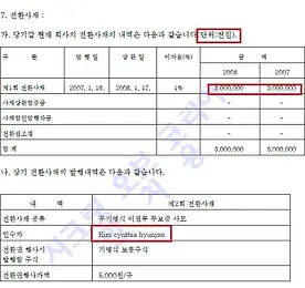 정인용정말주 썸네일형 리스트형 김종훈 처남, 유리와이드 부채상환조건 25억에 매각 - 알고보니 부채 57억은 정씨및 정씨관계사가 채권자[미sec제출 계약서 원문] 김종훈 미래창조과학부 장관 후보자의 처남 정크리스토퍼영씨가 지난 2008년 5월 자신이 대표로 있던 유리와이드를 부채 백73억원등을 인수사가 대신 상환하는 조건으로 현금 25억원에 매각했으나 부채중 최소한 57억원은 정씨 자신과 정씨자신이 대표인 또 다른 회사가 채권자였던 것으로 드러났습니다. 리튬전지 생산회사로 2006년 12월 설립된 유리와이드주식회사는 2008년 5월 20일 미국회사인 셀가드의 자회사 폴리포르인터내셔널에 매각됐으며 매각당시 대표이사는 현 키스톤글로벌 대표이사인 정크리스토퍼영씨였습니다. 폴리포르인터내셔널이 지난 2008년 5월 28일 미국증권거래위원회에 제출한 '유리와이드주식매입계약서'에 따르면 양사는 5월 14일 계약서에 서명한뒤 5월 20일 계약 집행을 끝마친 것으로 돼 있습니다... 더보기 김종훈처도 키스톤글로벌 주요주주 유리웍스에 30억원 빌려줘[김종훈 3] 김종훈 미래과학창조부 장관 후보자 처남이 운영하는 업체의 주가가 연일 폭등하고 있는 가운데 이 회사 주요주주에게 김종훈 후보자의 처가 한때 30억원을 빌려준 것으로 확인됐습니다 김종훈 후보자의 처가 30억원을 회수했는지는 알려지지 않고 있으나 김후보의 처도 처남의 사업에 관계했음을 알 수 있습니다. 현재 키스톤 글로벌의 대표이사인 김종훈 후보자의 처남 정크리스토퍼영씨[58세]는 지난 2006년 12월 유리웍스와 유리와이드등의 설립에 관여하면서 국내에 유리계열사를 6개까지 늘렸었습니다. 2013/02/24 - [분류 전체보기] - 키스톤글로벌, 9년연속적자 홍콩상장업체에 투자추진, 왜!왜!왜! - 지난해 수입 16억,순손실이 무려 550억[홍콩증시 공시원문] 2013/02/24 - [분류 전체보기] - 홍.. 더보기 키스톤글로벌 최대주주 미국회사 부사장이 김종훈 장인 정인용씨[김종훈2] 김종훈 미래과학창조부 장관 후보자 처남이 운영하는 업체의 주가가 연일 폭등하고 있는 가운데 김후보자의 장인 정인용씨가 이 회사 최대주주의 미국회사 부사장으로 재직중인 것으로 확인됐습니다. 2013/02/24 - [분류 전체보기] - 키스톤글로벌, 9년연속적자 홍콩상장업체에 투자추진, 왜!왜!왜! - 지난해 수입 16억,순손실이 무려 550억[홍콩증시 공시원문] 2013/02/24 - [분류 전체보기] - 홍콩에도 김종훈 테마주-키스톤글로벌 폭등하자 만년적자회사 갑자기 대량거래 2013/02/21 - [분류 전체보기] - 키스톤글로벌, 미국광산 연간생산량 20-40배 부풀려 [미연방노동부 생산량 통계] 2013/02/21 - [분류 전체보기] - 키스톤글로벌 최대주주 미국회사, 석탄매입계약 불이행으로 피소.. 더보기 이전 1 다음